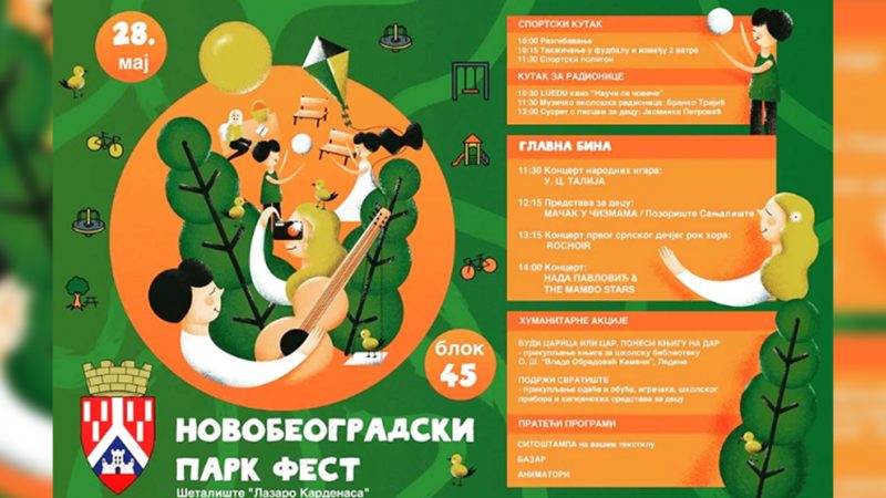 Novobeogradski park fest: Edukativno-humanitarni dan održaće se u nedelju, 28. maja 2023. od 10h na šetalištu „Lazaro Kardenas“ u Bloku 45.